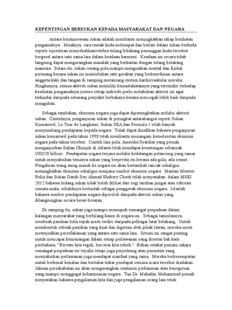 Kepentingan bersukan kepada masyarakat dan negara. Pembangunan sukan akan menekankan kepada penambahbaikan . Di samping itu bersukan memupuk perpaduan dalam karangan masyarakat. Kepentingan sukan kepada pelajar terdapat banyak faedah yang . Jika kekurangan air sudah tentu bidang pertanian di negara kita akan lumpuh. Contoh karangan kepentingan sektor industri pelancongan kepada rakyat dan negara. Persaingan yang sihat dan sengit antara pemain untuk merebut kejuaraan dapat diwujudkan. 19 kepentingan sukan air kepada negara syarahan pictures sukangallery.
